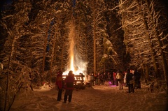 Традиция встречать Новоый Год у большого лесного костра отается неизменной.